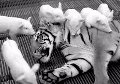 古今中外許多成大業者,即是靠這招 "扮豬吃老虎" 取得了成功.這種方法不僅使對手疏于防範,而且也避免了自己因爲鋒芒太盛而引來攻擊,實在是一舉兩得.不過也必須提防自己身邊那些潛在的 "弱者" 使用 "扮豬吃老虎" 的奸計對付自己. 因此, 在實施 "扮豬吃老虎" 時也需恰當地 "扮虎吃豬" 使對手無所適從以達到戰無不勝.