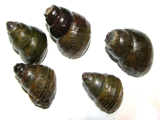 不太確定這幾顆是否是 稜田螺, 只是與一般所見的 石田螺 似乎稜角比較明顯 ( 一般 石田螺 的外殼比較圓潤光滑, 這些稜角相對比較明顯 ).