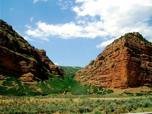午後在烏雲密佈中出發,直到進入懷俄明才等到撥雲見日。一路上走馬看花,看美國州際公路 I-80 的顏彩變換從玉米田的新綠、牧草的金黃、到鼠尾草的銀灰; 一眨眼就錯過的路邊動物也從乳牛、肉牛 、馬,變成野羚羊。 當窗外的石頭山開始染成赤焰般的艷紅時,我們知道猶他州在望,長久蜷曲而僵硬的身心也開始舒展、甦醒。