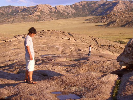 再一次登上獨立石 (Independence Rock),喜見前些天的大雨給石頂上的坑坑洞洞注滿了水,趕緊趨前細看,但小水窟裡依舊是靜得出鬼,當年在水裡成千成百正在群泳的小異形生物再不復見,心裡悵悵的,只得又一次帶著問號走下了獨立石。到底那是不是現存遠古生物外號 “恐龍蝦“的Triops?幾年來三番四次重登獨立石卻不得其解, 我腦海中牠們的謎樣身影已經愈來愈模糊。