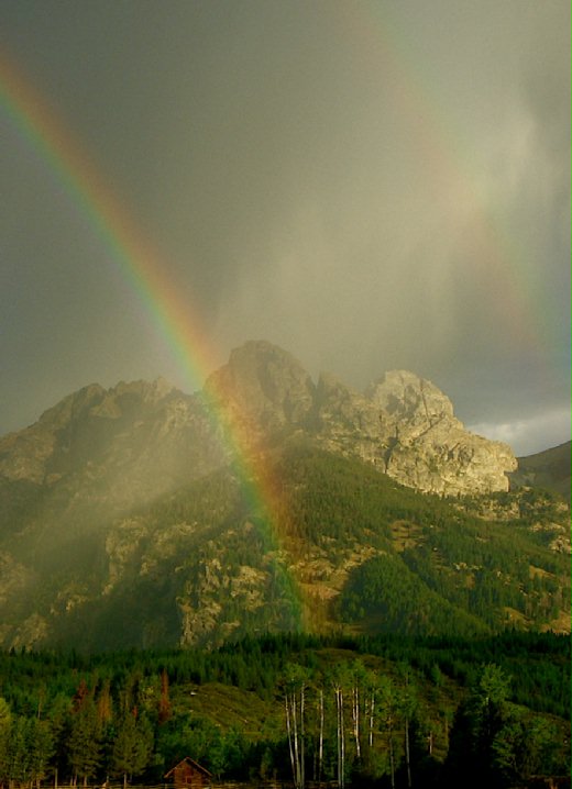 回到營地,卻見夥伴們一個個灰頭土臉,原來因為被營地管理員抓到違規多搭了一頂帳棚,大夥剛剛冒著那一場雨、七手八腳地拔營。兩道彩虹?他們沒看到。弔詭,在我的相片裡身在美景中的珍妮湖營地本身卻看不到了美景,住在彩虹盡頭的人卻找不到欣賞彩虹的角度。