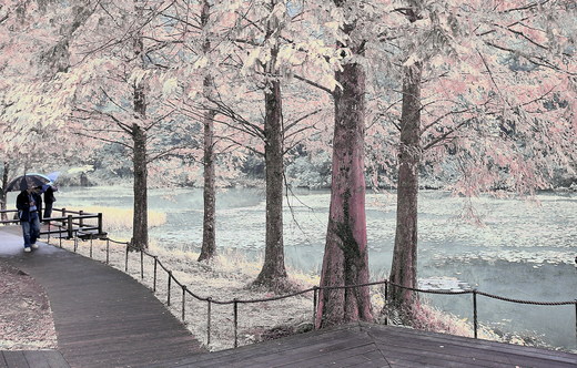 上個月老師開設黑白&紅外線拍攝課程,紅外線外拍恰巧都碰到下雨不然就是雲層厚到不見光的日子,拍起來實在沒有什麼特別的感覺。這次又去了福山植物園想要試試看紅外線拍法,沒有想到天空一整個不美..唉!又是陰雨綿綿的福山植物園,連來二次都是碰到這樣的天氣。