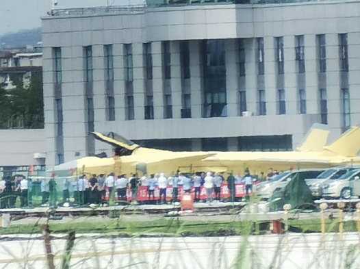 【後註一,2023/06/30】根據美國知名軍事網站《The War Zone》引用多方小道消息綜合報導(參見《China’s J-20 Fighter With Long-Awaited WS-15 Engines May Have Flown》,内含下面這張爬墻黨提供的附圖,請注意橫幅上的“-15”;橫幅面對而不是背對圍墻,似乎成飛對這類“泄密”兼免費廣告並沒有特別反感),換裝WS-15的全狀態J-20在昨日開始試飛。去年三月也有類似傳聞,但當時是雙發中有一具WS-15,用來驗證引擎;現在全是新發,應該是驗證新飛機型號。