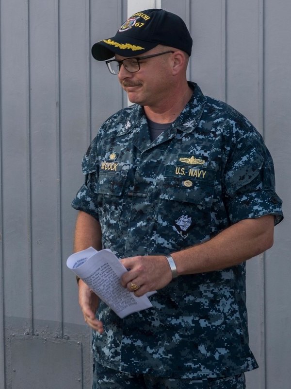 Aycock艦長,正準備做告別演説;他那時必然已經知道,他的海軍生涯實際上已經告一段落