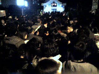 國父紀念館前有輛花博節的花車,栽滿各式格樣亮麗的花朶和綠色植物,小朋友模樣可愛的道具,再朝往市政府前的舞台,五月天正在歌舞秀,觀眾有跟著節拍唱歌舞蹈。走了一圈,回頭走捷運站,管制進入人次,宣導請向前走,大家很有秩序走到華視公司前,安排多輛空車到中山站,己是凌晨二時了,道路狀況如白日一樣充滿熱鬧的車潮。