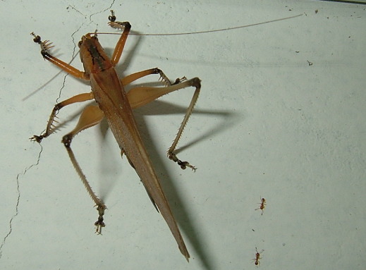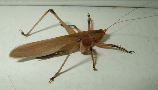 蚱蜢,原本年輕時的翠綠色變成帶褐色了 。