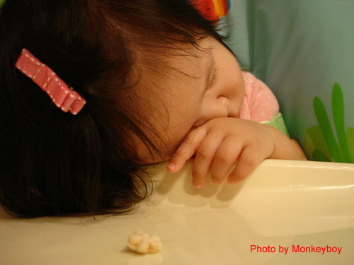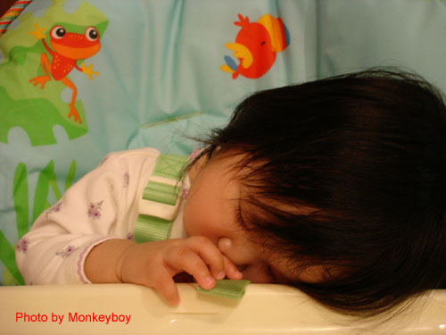 也常常這樣吃東西吃到睡倒在High Chair。