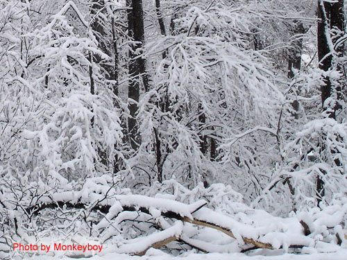 黑森林座落於睡美猴上班的公司旁邊,夏天綠葉濃密,各式各樣鳥兒在林間輕語,常有小鹿、野兔、松鼠、浣熊出沒。秋去冬來,枯葉飄零,小動物們做鳥獸散,森林現出原形,只有枝幹抖擻地迎著冷風,擁抱霜雪。