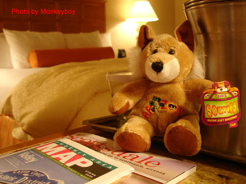 常用嬰兒手語 (圖 2,參考自 Babysigns.com)。爹地出差五天回家,帶了一隻「卡優提 (coyote)」,這娃娃來自亞利桑那州的鳳凰城 (圖 3)。