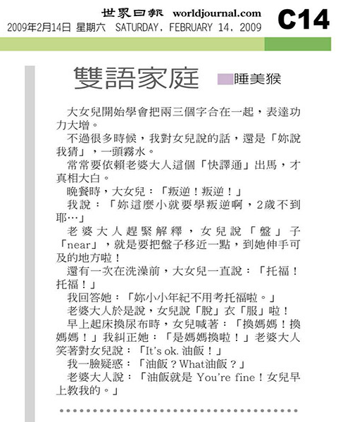 - 18樓. 珍妮曾在西雅圖2009/01/16 13:33雙語同步發音