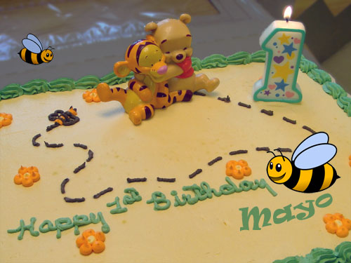 美乃滋過一歲生日,是個里程碑,訂了蛋糕慶祝,選了小熊維尼及 Tigger 的玩偶為主題,希望姐姐妹妹長相扶持。