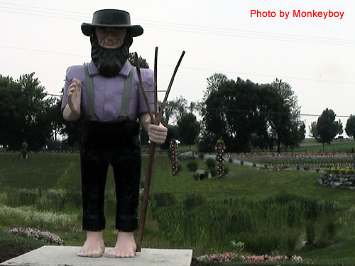 距猴兒家約二十英哩處,有一小鎮 (Nappanee),附近有許多 Amish 人居住。他們平日出門的交通工具,是駕駛四輪小馬車 (Buggy)。所以附近的店家,都設有馬車專用停車場(圖六及圖七),形成當地普遍的景觀。