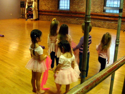 原本四處遊蕩、無所是事,天天騎著三輪車繞遊戲間的美乃滋,現在已經可以拿著絲巾、跟著姐姐中規中矩地隨樂起舞。坐在台下的猴兒,掩不住欣喜地對鄰座說:「That's my daughters!」望著她們靈巧的身影,除了歸功於小龍包教導有方之外,心中充滿的是幸福的感覺。