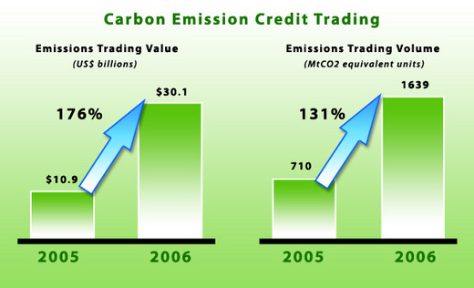 根據統計,二○○七年全球碳資產的交易,高達七百億美金,是二○○六年的二點三倍;其中所達成的減量結果,佔該年度二氧化碳排放量的二.五%。「這代表一九九七年至今的京都議定書是可行的。」而這樣的商機,對台灣乃至世界而言,也是一個創造性的市場。