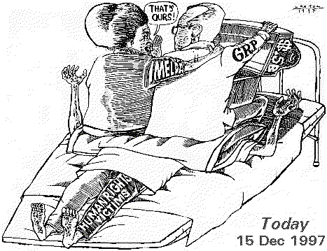 台灣一向眼中只有美日歐等大國, 這回出了一個與馬可仕, 皮諾切齊名的阿扁。我們的 GNP 或許比許多第三世界的國家都多出數倍, 但是曾經為貪官所苦的香港與南韓不論民主與否都已擺脫污名 。若不是曾以秘密帳戶聞名的瑞士甚至後來居上的新加坡不甘淪為與開曼帬島等量齊觀的洗錢天堂, 我們的檢調單位可能還在躺著幹 !