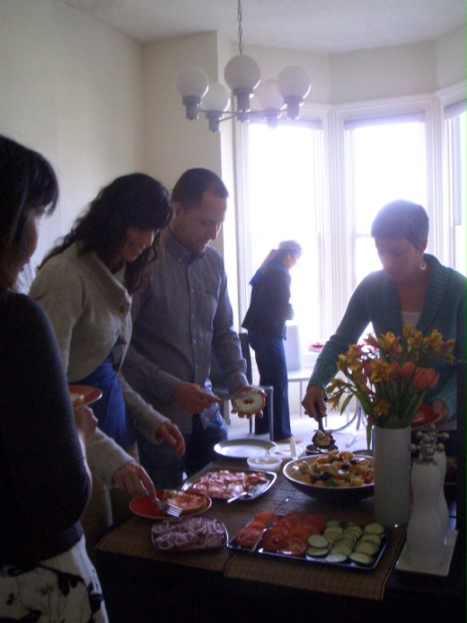 PS 照片是母親節在貝克夫婦家主辦之Brunch Potluck 貝克夫婦準備的貝果 (及夾料)+ 燻鮭魚 + 有機水果沙拉+ 丹麥麵包+各式飲料 (家人们亦帶來熱食及甜點共襄盛舉)