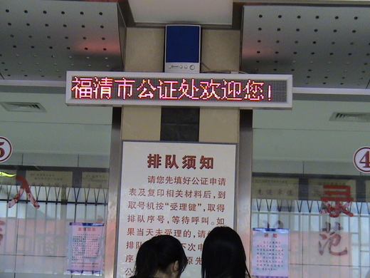 中華人民共和國福建省福清市公證處 公證員XXX 二00九年九月九日