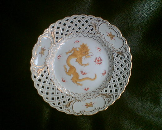 鐵証如圖:邁森燒製的〝手繪明龍鏤花大盤〞,連龍都一起仿冒。