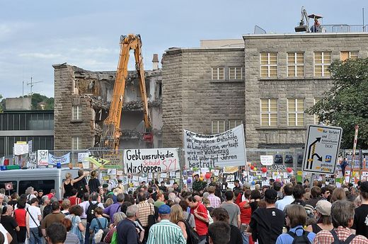 在長期執政的基民黨州政府力挺之下,司圖加特市政府決定不顧民調,一意孤行。終於,在2008年10月,引發了第一次抗議遊行,共有4000多市民參加。此後,抗爭不斷,延至2009年底,已演變成每週一固定舉行的抗議集會。