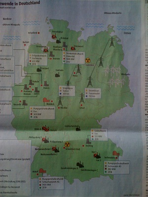 這是執政的基民黨,今年在地方選舉的第四次重挫,兵敗如山倒,已經倒到總理府門口。一星期之後,總理梅姑出面搶救,再度重申2022年全面廢核的決心。這次不是空口說白話,附帶提出立廢8座核電廠的方案,同時計劃增設6座燃煤、2座燃瓦斯、3座水力抽蓄發電廠,來補足廢核之後,供電量的短缺。〔如圖所示〕