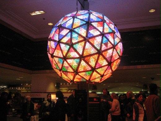 十一月中某天逛到 34 街的 Macy's 梅西百貨,剛好在一樓電扶梯旁看到一個五光十色的大水晶球。走近一瞧才知道,原來這就是今年 12 月 31 日晚在時代廣場倒數跨年要用的水晶球!