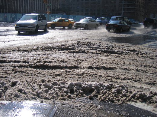 半融化的雪(slush)沾染了路面上的塵灰,再加上來往行人無情的踐踏,更顯泥濘不堪。這些灰頭土臉的 slush,其貌不揚倒也沒啥攻擊性,只是讓人覺得礙手礙腳。那淺黑色又軟綿綿的模樣,讓我不由得想起小時候最愛吃的巧克力牛奶雪花冰:巧克力醬和煉乳、雪花冰充分攪拌後,半融不化是最好吃的時候…oh well, 還是換個比喻好了。