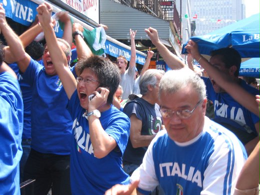 今天是 2006 World Cup 義大利對法國的冠軍賽,老公和我這兩株牆頭草也去紐約的