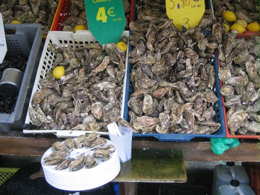 老實說我平常並非生蠔迷,但在 Cancale 可能因為是整個場景的薰染,我竟也「咻!咻!」吃了一堆。我只能說果然名不虛傳,肥嘟嘟的蠔肉、新鮮的口感、天然的鹹味再加上淡淡的檸檬香味,一大口吸入嘴中的剎那,整個人都不由得抖了一下,彷彿悠遊在海洋中!最特別的是打開生蠔吃完後,就把空殼隨手丟入海中,真是一個快意又瀟灑的手勢!