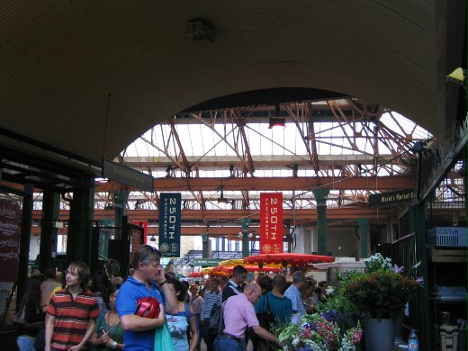 整個 Borough Market 的規模、種類和品質,很有法國 Fauchon 之類大型高檔 food market 的味道,但在露天的場地做買賣,不但覺得 lively 有活力,也更有懷舊氣氛。當我走在市場內的石頭路時,不由得想像倫敦人 250 年來在此聚集採買的熱鬧景象:腦海裡閃過從 BBC 影集中看過的片段,也浮現狄更斯小說中市井小民的謀生情景。