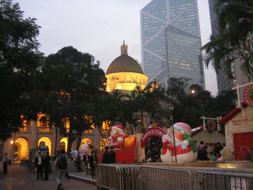 我去年此時和老公首次感受香港的耶誕,對「聖誕歡樂小鎮」的花樣百出印象深刻。皇后像廣場位於高樓林立的中環,還頗有小鎮隱身在山腳下的情調,旁邊就是維多利亞建築風格的立法會大樓,又增添了不少殖民地的風情。
