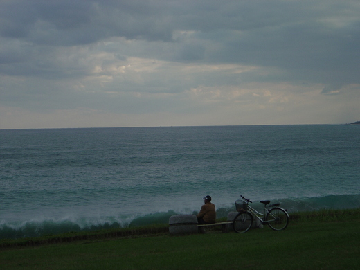 北濱公園一角是在第二天單車遊-白鮑溪之後然後到市區吃了幾項所謂的名產,步行回飯店中所經過的公園,或許經過了一天"運動"後,很累,突然看到這一幕!一個老人家不應該說是有二位老阿伯好悠閒的獨自在望著海邊,一位老阿伯吹起了口風琴,那畫面很令我感動及感觸良多!