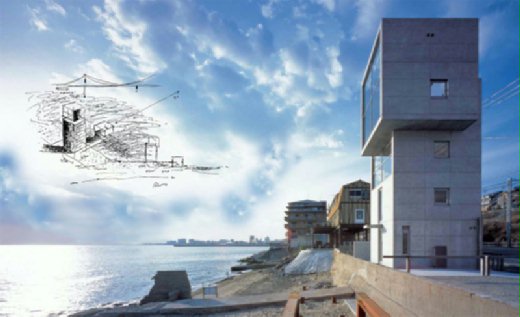 朋友邀案,希望自己能擁有在瀨戶內海海邊的一棟房子,因此,安藤面對著眼前這片海,一筆筆的描繪出房子最初的型體與海之間的印象,建築物面向瀨戶內海,海面規律的隨著潮汐漲退,平靜之中,覆蓋著一股隨時變動的力量。而基地也面臨一個重要議題,也就是來自海洋腐蝕的力量。但樂觀的看這環境,陸地的部份已漸漸轉化為一片沙灘,是種少見的的美感。而阻隔巨浪侵蝕的防波堤,與陸地的距離間,遺留了一灘淺湖池,當安藤在進行設計的時候,這些細微的自然環境變化成了建築物將攝入的畫面。