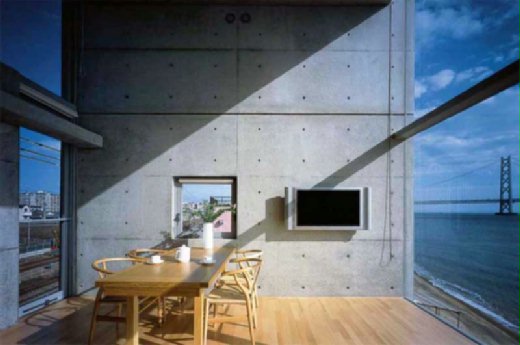 房子正向面著瀨戶內海,對面的海岸線是與日本本州相隔四公里的淡路島,島上的北淡町是1995年阪神大地震的震央位置,讓原本只產橘子與柿子的環境失去了生機。往東邊海面望去,全世界最長的吊橋「明石大橋」橫跨著明石海峽,深水海域讓海面充滿不定的變數,地震、暴雨不停地改變地表的面貌。對於建築師安藤忠雄來說,這樣的地理環境與位置,畫面強烈的植入他的思維,淡路島對他並不陌生,島上的水御堂(Water temple)以及夢舞台(Yumebutai)等公共建築設計案讓安藤忠雄最初有了開始接觸這環境的機會,現在站在日本本州反觀著淡路島,建築起一處屬於海邊味道的住家。