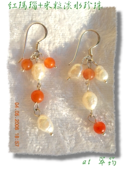 紅瑪瑙+珍珠+純銀材料(項鍊/手鍊/耳環)
