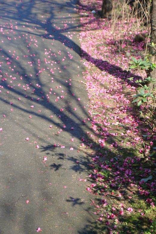 在晨光下走過櫻紅