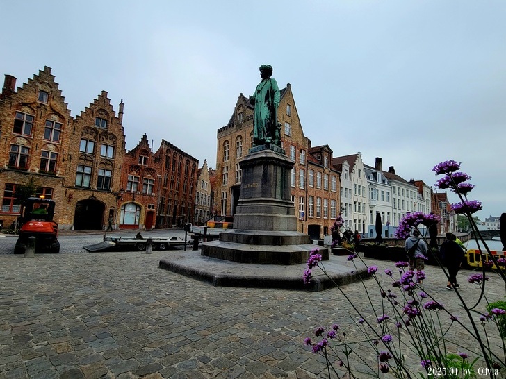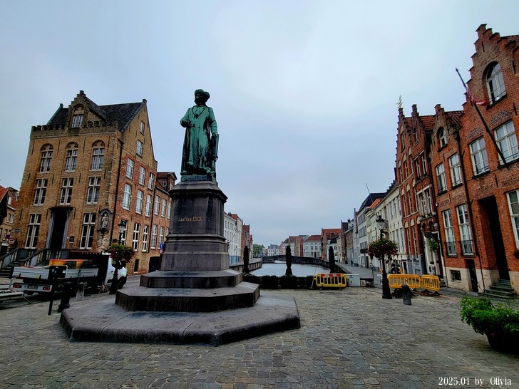 比利时布鲁日的扬·范·艾克雕像. 比利时布鲁日:1878年由当地雕塑家H创造的扬·范·艾克雕像 皮克里是艺术学派最著名指挥人物的纪念品。(取自網路)