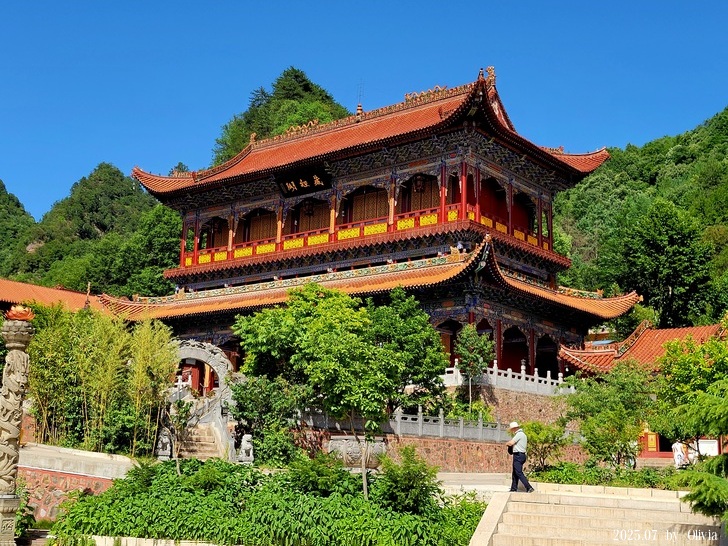 在車上師傅(仙人崖當地人)說,他剛載了3個女生來淨土寺,我剛剛打電話給他時他已經在回程路上了,他問我回市區要不要跟她們拚車回去? 我說我已經跟另一個師傅(在麥積山石窟到仙人崖的車上)談好價錢了,包括去淨土寺是免費的(這段也是10元RMB)。