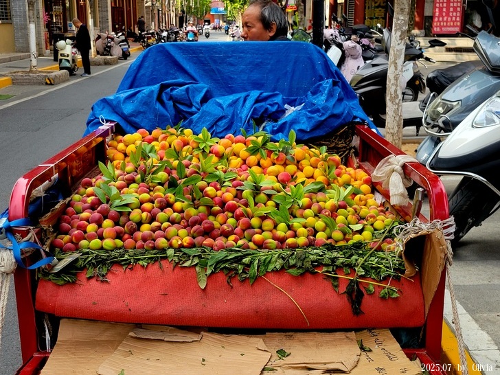 PS: 整理相片時才知道原來我來時就拍了他的相片,走回經過時才買了杏子,8RMB一斤。(大陸1斤=500g)