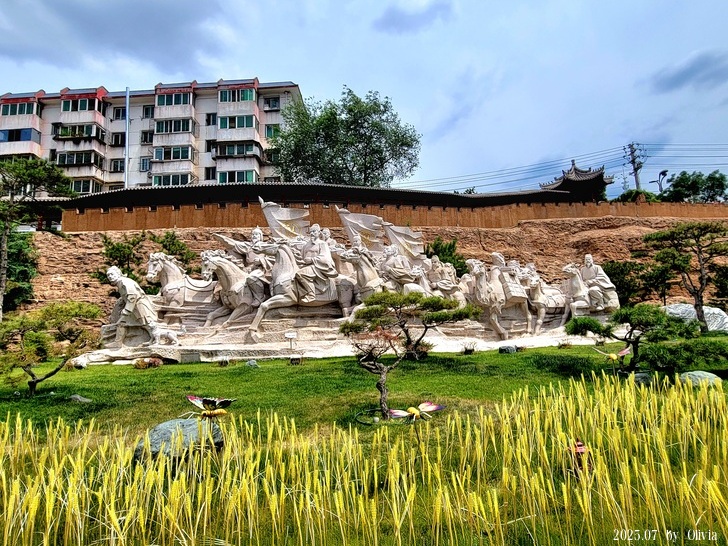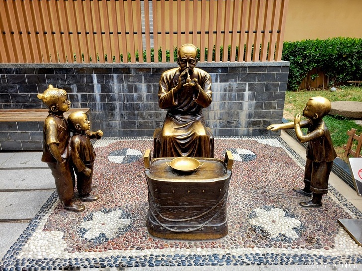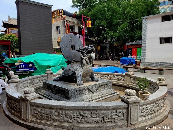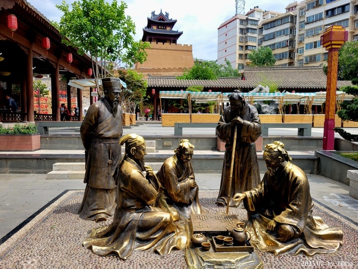但這次打車,好似沒人要理我(沒人接單),漢啟樓前有一位像保全的年輕人,於是問,去<南宅子>可以路邊打車嗎? 他一聽我要去南宅子,說你往啟漢樓▲左邊巷子走進去就是天水古街,旁邊有些雕塑可以拍一拍,再走過去就是南宅子了,不必打車了啦~(他聽到我要打車感到有些誇張,但天氣太熱,我一點也不想走啊~)