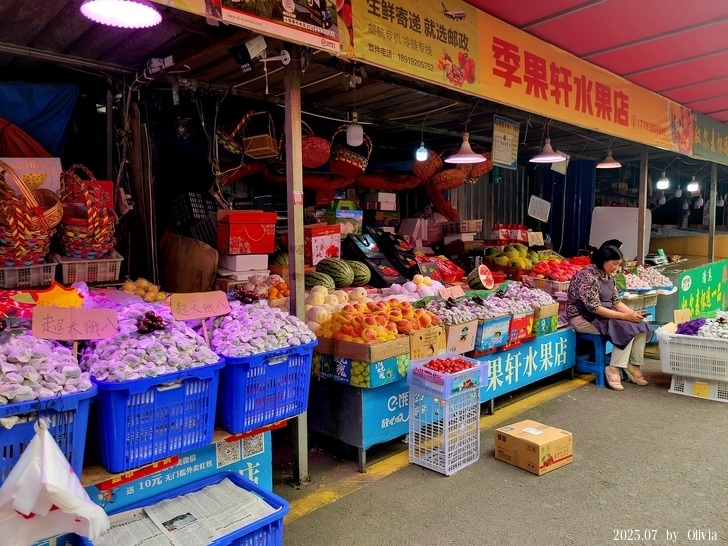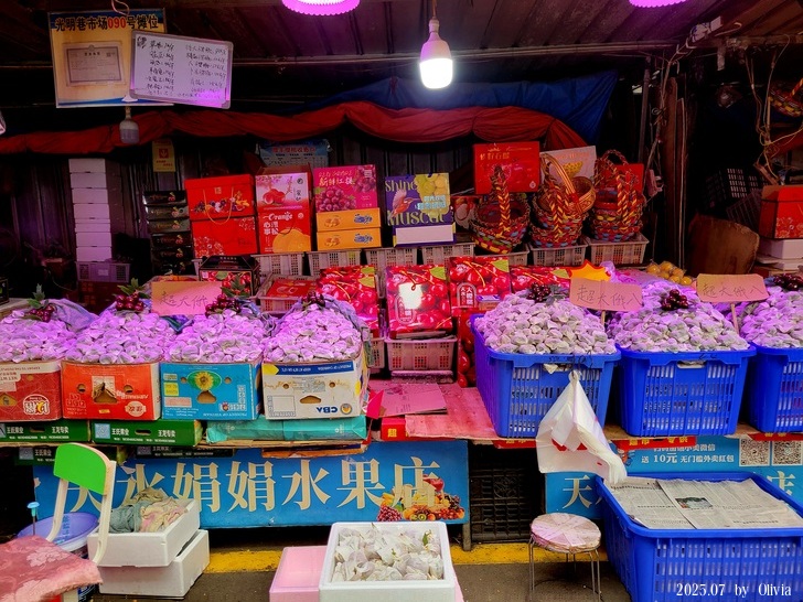 走著走著穿過女人街,沒啥餐廳...又走著走著來到一個傳統市場,紙包著都是櫻桃,正是盛產季,但聽說已經快過了。
