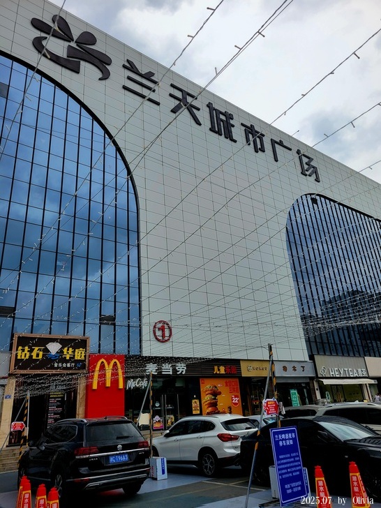 於是我往蘭天城市廣場走(上上圖,公交就在廣場前),想說這棟大樓裡必定有吃的吧? 但1F路面看起來沒什麼店家,便搭著電梯上樓,但不知哪一樓會有餐廳,不知是不是問了同電梯的外送小哥,在某樓層出電梯。