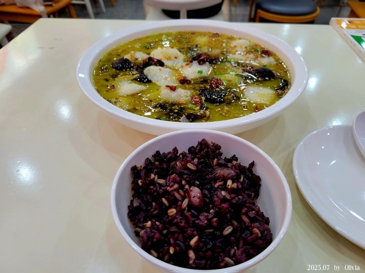 小小逛了一下,終於看到想吃的,酸菜魚竟然有個人餐,女服務員要我手機點餐就不理我了,但我趕時間又操作時有些麻煩....後來終於來個男服務員,我說我趕時間要搭高鐵,可以幫我處理嗎? 才終於搞定。