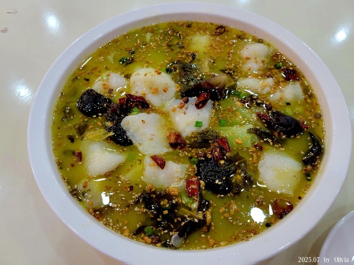 酸菜魚非常下飯,好吃。男服務員幫我倒了杯茶,問我哪來? 聽到台灣也相當驚訝~