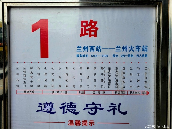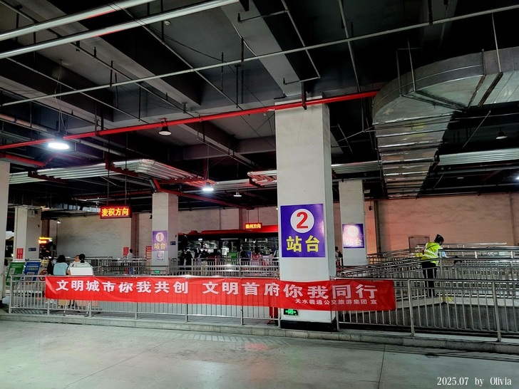 要說幸運就有多幸運,再繼續走著走著...竟看到公車總站,我先去找找有沒有到天水南站的公交(本來要打車去的),竟然有耶~1號公交▼。