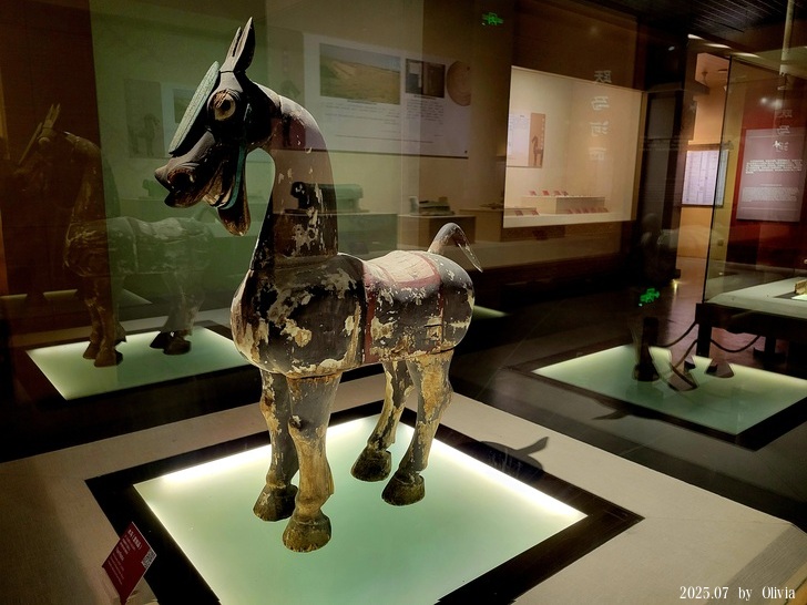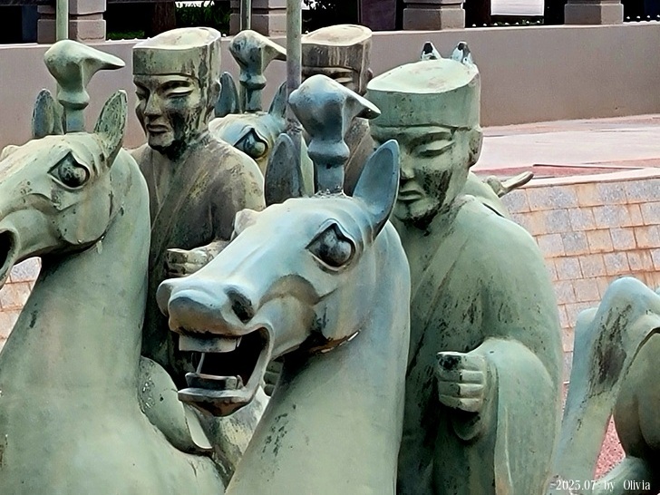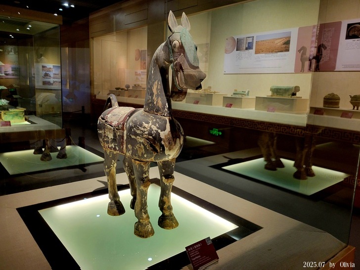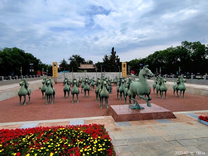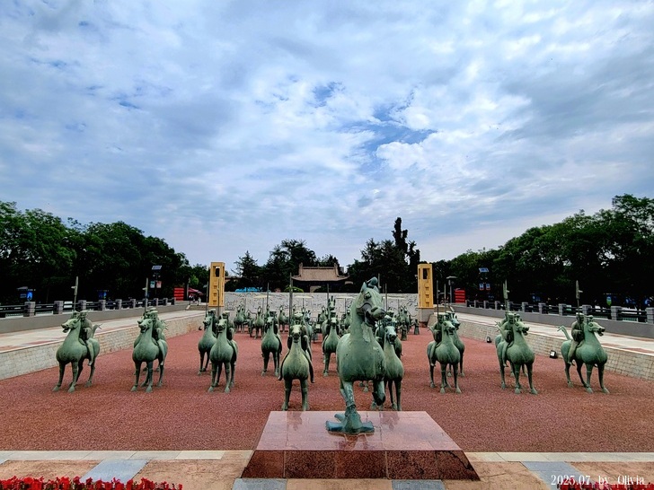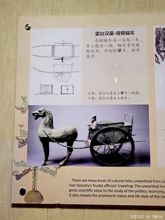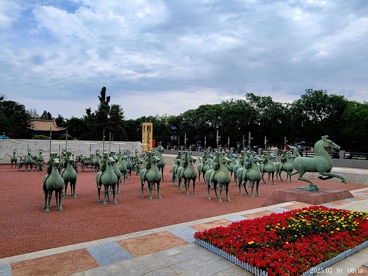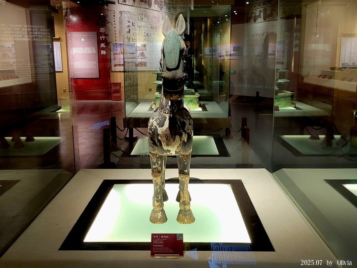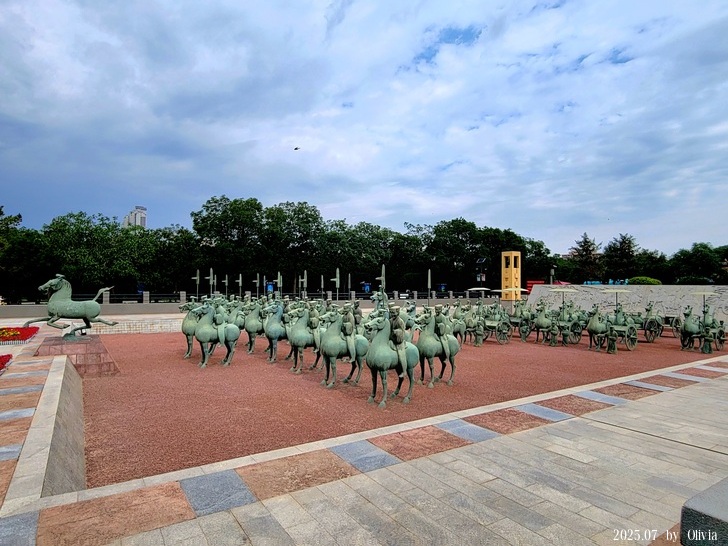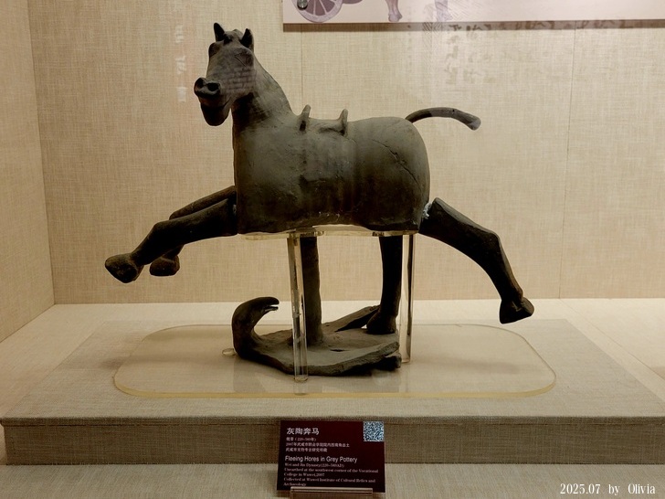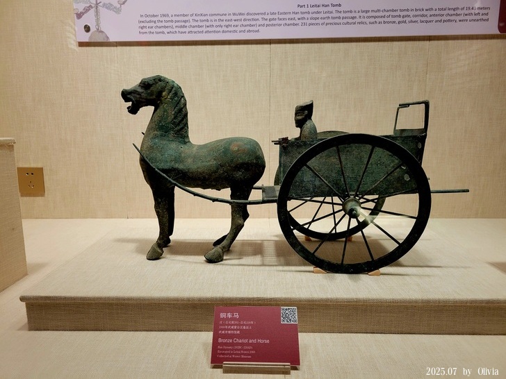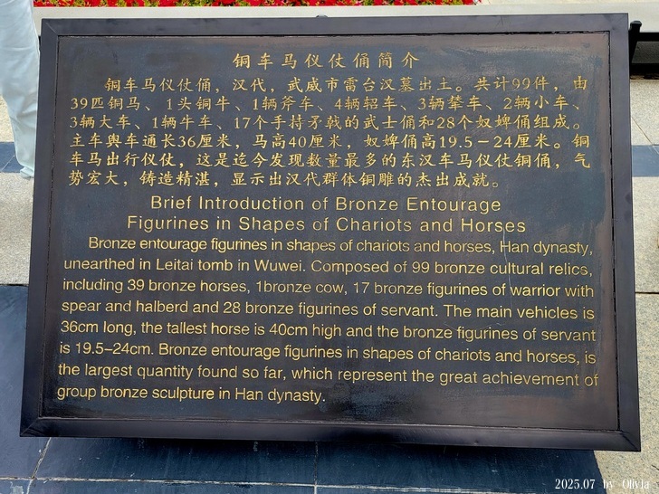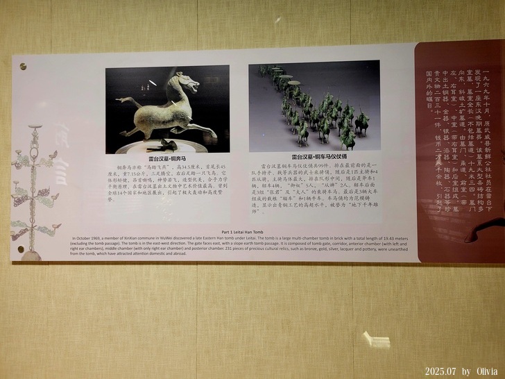 該墓雖多次被盜,但依舊出土230多件珍貴文物,其中武士俑17件,奴婢俑28件,銅馬39件,銅車14輛,銅牛1件,銅幾1件。其中最著名的是後來成為中國旅遊標誌的青銅奔馬。(取自維基)