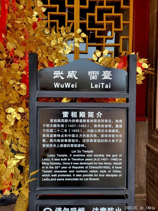 雷台,是古代祭祀雷神的地方,為前涼(301年─375年)國王張茂所築靈鈞台。因建有明天順年間的雷台觀而得名“雷台”,數百年來香火不絕。