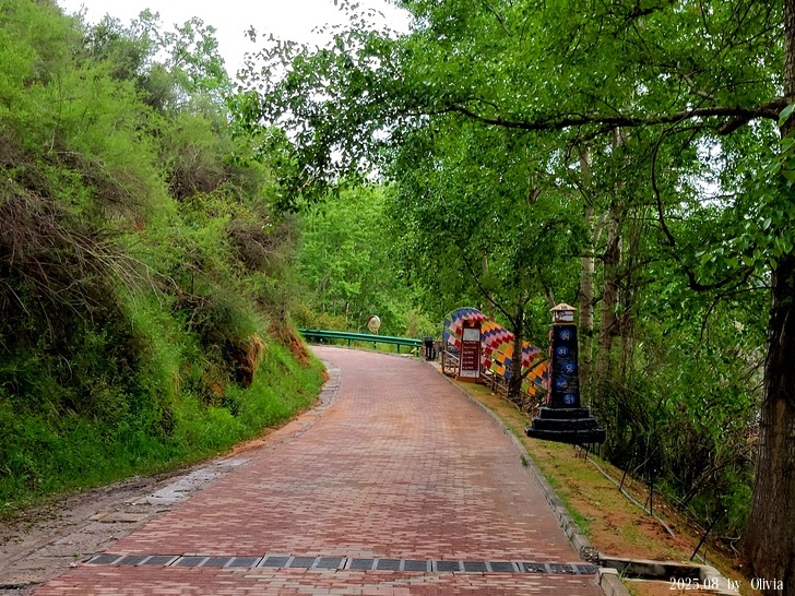 ▲搭景交車進來再徒步往上走,車上有位穿得美美的講解員跟車,問是否有人需要講解,也是1人10元,我們這團就一起請了她一起聽講解後才散開。