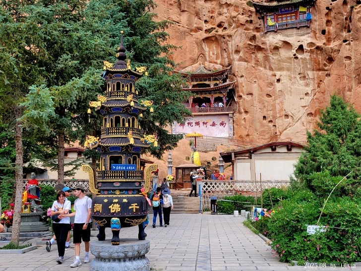 爬完33天石窟搭景交車前,買了個酸奶解饞,後來到千佛洞,一看又是個不輕鬆的活