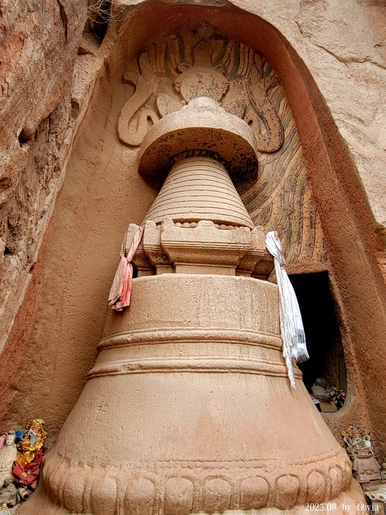 千佛洞是馬蹄寺石窟群當中開鑿最早的區域之一,根據其具體分布範圍可以劃分為西區、中區和東區。除東區為87座浮雕舍利塔外,其餘兩區共有10餘座石窟,其中可編號窟兩區各有4座。(取自維基-詳情請搜馬蹄寺,介紹很清楚,因內容太多,不貼上來了)