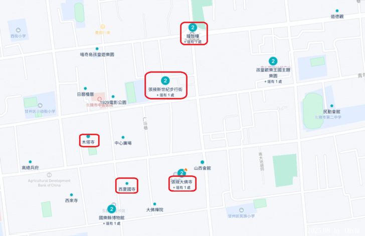 ▲沒錯,張掖的市區景點這樣,且木塔寺在整修,也就張掖的最後一天,把大佛寺和甘州博物館走完,就算大功告成。